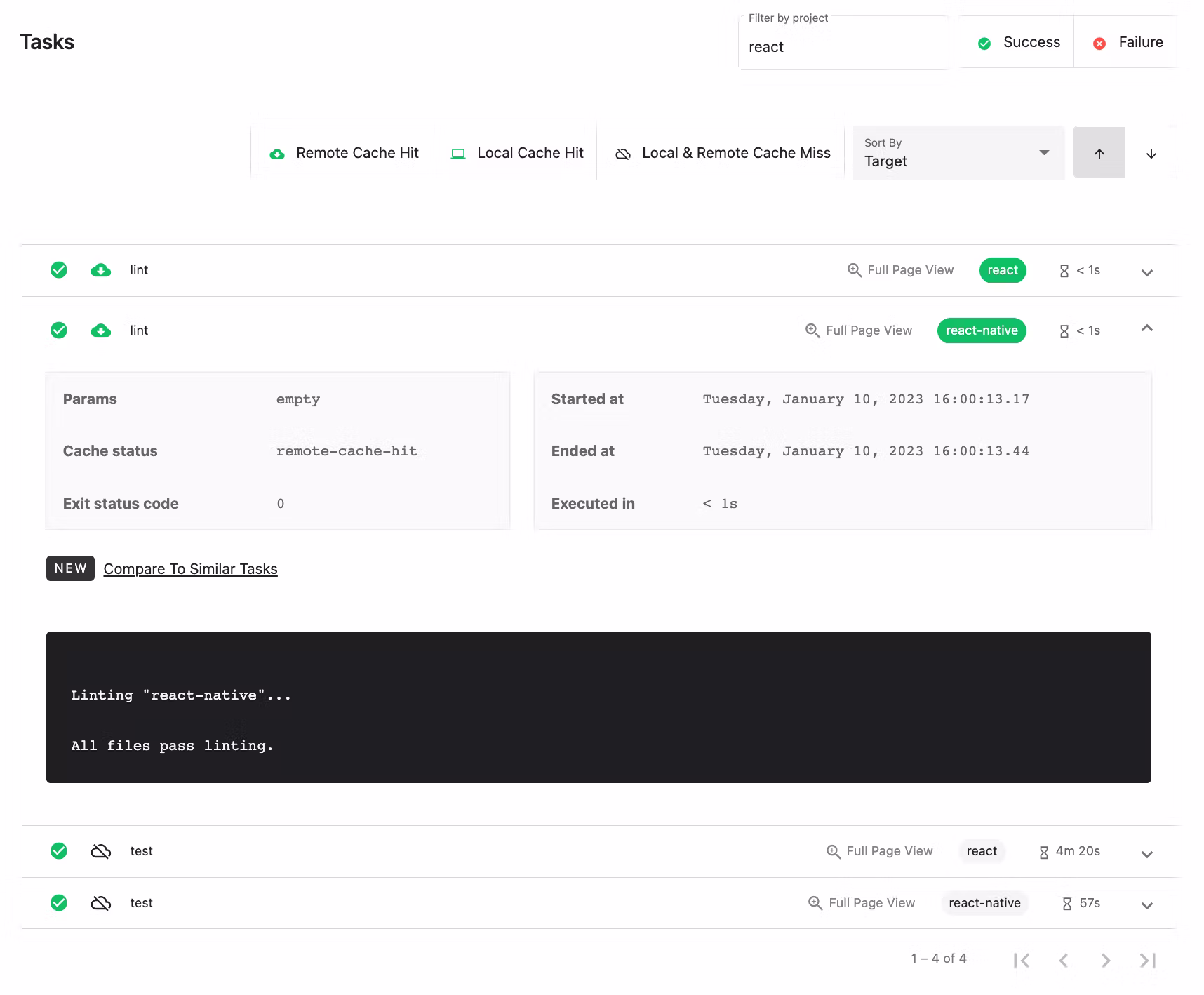Let's try it out! Select a task to run and see the results in the run list. You can get an even more detailed breakdown in the Nx Cloud web app.